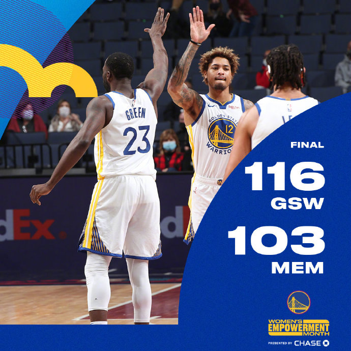 优直播3月20日讯 NBA常规赛,灰熊主场迎来勇士的挑战,前者上一场依靠莫兰特最后的准绝杀险胜热火目前排名西部第10位,后者上一场也是轻取火箭排在西部第9位,但库里因为尾椎骨受伤缺席本场比赛。开局阶段,没有库里的勇士进攻勉强与灰熊抗衡,凭借着维金斯末段的神勇发挥,勇士一波进攻高潮领先8分进入次节,次节灰熊还是没有找到手感,后半节勇士依靠维金斯和普尔火热的外线手感继续拉大比分,半场结束勇士领先19分。易边再战,灰熊连续失误,打不出自己的进攻节奏,勇士抓住机会内外开花将分差拉大,梅尔顿和温斯洛的三分帮助灰熊追回一些分差,勇士依然领先19分,末节灰熊在内线找到机会追回一些分差,勇士依然依靠积极性守住20分的优势,后半节成为练兵时间,最终勇士轻取灰熊。