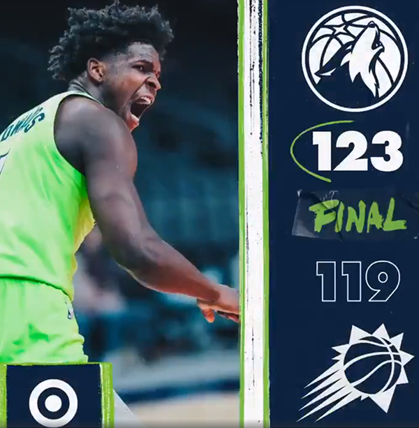 优直播3月19日讯 NBA常规赛,太阳今日迎战森林狼,前者上场比赛大胜灰熊排在西部第二位,而后者上场比赛则是输给了湖人依旧在西部垫底。比赛上来森林狼就表现出了极强的求胜欲望,唐斯和爱德华兹都有上佳表现,而太阳这边单节失误上双打得十分混乱,进入次节太阳虽然在进攻端表现不错,但实在无法限制爱德华兹的发挥,后者单节拿到15分帮助森林狼紧咬比分,半场结束时太阳领先5分。易边再战,太阳一直占据着场上的主动,分差也是被拉开到了两位数,但森林狼并没有放弃并成功在末节追上了比分,比赛悬念保持到了最后,关键时刻爱德华兹杀到禁区造成犯规但两罚中一,不过森林狼使出犯规战术没有给对手三分绝平的机会,最终森林狼123-119逆转太阳。