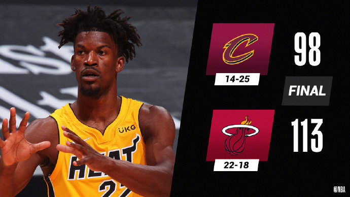 优直播3月17日讯 NBA常规赛继续进行,热火主场迎战骑士。巴特勒复出后热火重回正轨,目前排名已上升到东部第四,球队也取得了四连胜。而骑士这边近况不佳,目前位列东部倒数第四,遭遇了三连败,队中几个球员深陷交易传闻。本场比赛阿德巴约复出,乐福不会出战。一开场,双方教练都利用暂停调整帮助球队打出进攻高潮,随后热火防守端发力,骑士首节三分12投2中,热火连中三记三分领先11分结束首节。次节前半段骑士一度利用热火的失误迫近比分,但外线始终手感冰凉,希罗和巴特勒先后发力帮助热火扩大领先,上半场骑士三分18中2,半场结束热火62-48领先14分。易边再战,骑士找回外线手感单节命中6个三分,但热火势头更猛,多点开花继续扩大领先,热火带着19分的优势进入末节。第四节比赛两队命中率暴跌,骑士后半段发力试图迫近比分,巴特勒和阿德巴约联手控制住局面,帮助热火把优势保持到了最后。最终,热火主场战胜骑士,取得五连胜的同时送给对手四连败。