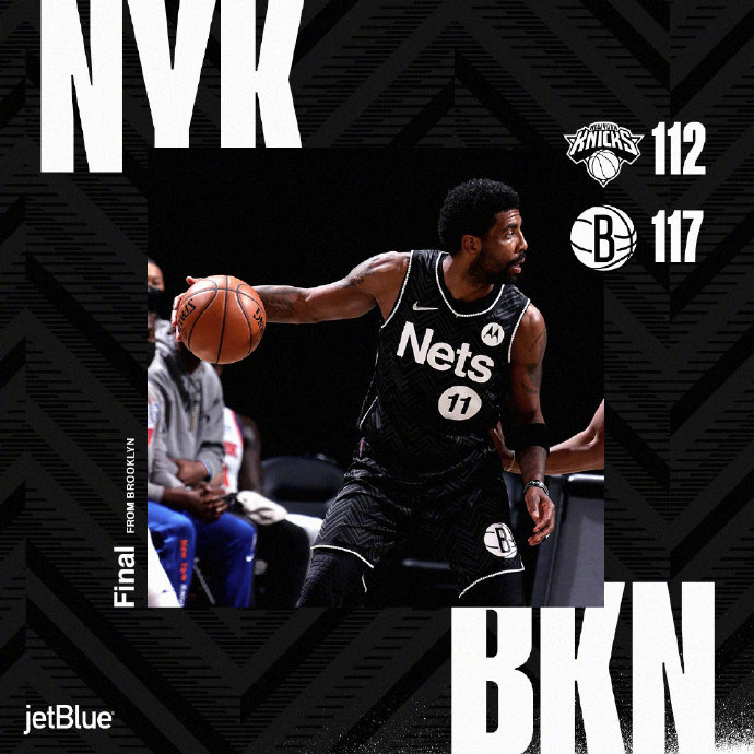 篮网(27-13):欧文34分4助攻,哈登21分15篮板15助攻,格林20分6篮板2助攻,哈里斯13分2篮板2助攻,小乔丹8分9篮板,克拉克斯顿6分4篮板,布朗6分3篮板。
