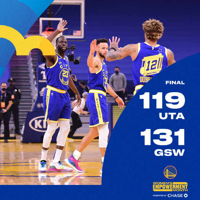 优直播3月15日讯 勇士主场迎来爵士的挑战,前者最近4连败掉至西部第9位,状态急需调整;而后者上一场轻取火箭稳居西部首位。开局上来双方都比较慢热,中段库里带领勇士打出15-0的高潮一举奠定优势,随后双方展开拉锯战,首节结束勇士领先11分。次节爵士抓住勇士替补没经验打出7-0的开局将分差追近,后半段勇士抓住爵士的连续失误,几个关键三分帮助勇士稳住局势,格林最后连续得分帮助勇士半场结束依然领先13分。易边再战,米切尔和戈贝尔内外联手帮助爵士追近比分,但勇士总是有人能回应上,三节结束勇士还是领先9分。末节爵士再次打出6-0开局随后将比分缩小至1分,但勇士替补们顽强抵抗守住优势,后半段勇士连续三个三分再次拉开分差,爵士连续犯错误失去翻盘希望,最终勇士击退爵士,终结自己的4连败。