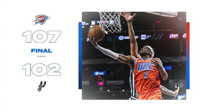 优直播3月5日讯 NBA常规赛雷霆对阵马刺,雷霆最近遭遇2连败。开场后雷霆外线轮流投进三分取得领先,不过马刺稳扎稳打紧追不舍没有让分差被拉开。第二节回来雷霆突然手感丢失,马刺打出反击完成反超并且依靠外线手感将分差拉大到两位数,上半场马刺61-50领先雷霆。下半场回来雷霆加快进攻节奏,他们多次打出反击一度反超比分,不过米切尔连续两个三分帮助马刺稳住节奏,但第四节雷霆又连续掀起反扑完成反超,马刺最后进攻乏力,最终雷霆107-102逆转击败马刺。