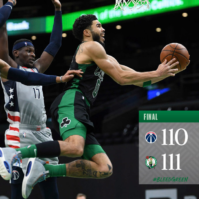 优直播3月1日讯 NBA常规赛,凯尔特人坐镇主场迎战奇才,前者上一场击败了步行者结束连败,后者则正在经历两连胜,此役布朗因伤缺阵。首节开局凯尔特人一波7-0取得领先,奇才通过造杀伤在罚球线缩小分差,塔图姆和贝尔坦斯互相回应三分球,两队陷入拉锯战,次节塔图姆延续良好手感,奇才则由比尔连续打中紧咬比分,半场凯尔特人60-55领先五分。下半场风云突变,绿军打成一波小高潮拉大分差,随后进攻效率下降,奇才不断蚕食分差,三节结束时追到只差三分,末节绿军进攻依然不理想,奇才众人发力很快获得反超,这时泰斯站出来连得八分稳住局面,随后双方进入球星对飙,比尔连续打中帮助奇才扩大分差,凯尔特人稳扎稳打迫近比分,还是比尔站出来连传带攻使奇才占据主动,塔图姆两记突破后又造成比尔失误,杀进禁区再中获得反超,比尔绝杀不中,凯尔特人111-110险胜奇才。