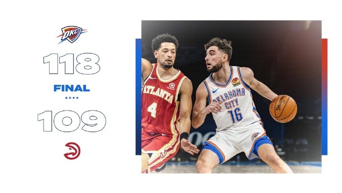 优直播2月27日讯 老鹰客场挑战雷霆,赛前双方分列东西部的十一和十二位,战绩上老鹰也仅仅领先雷霆一个胜场。比赛一开始,老鹰牢牢占据内线优势,卡佩拉和柯林斯轮番冲击篮筐得手,慢慢找到感觉的多特带队展开反击,首节雷霆31-33落后2分。次节前半段双方展开对攻比分紧咬,后半段老鹰命中率出现下滑,亚历山大和多特带领雷霆持续发力,雷霆半场63-55反超比分。易边再战,老鹰依然没什么起色,雷霆则延续火力,里突外投连续拿分,穆斯卡拉压哨超远三分帮助雷霆96-80三节领先16分。进入末节,卡佩拉个人表现抢眼无奈球队整体表现不佳,老鹰最多只能把分差迫近到6分,亚历山大和多特连续得分,雷霆没有再给老鹰机会,主场击败老鹰取得两连胜。
