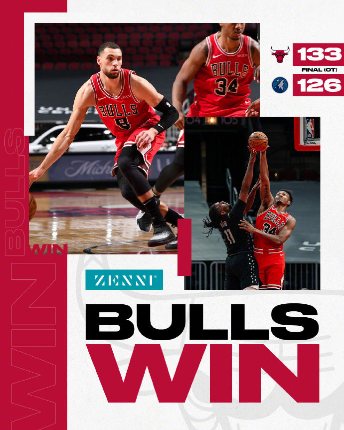 优直播2月25日讯 今日东部第八的公牛主场迎战联盟垫底的森林狼。森林狼在上一场刚经历换帅,目前已经遭遇5连败。即使唐斯已经复出多场,但森林狼的战绩依然没有起色。公牛则刚刚跻身东部第八,拉文若想带领球队时隔多年重返季后赛,今天这场比赛则不能犯错。首节,先进入状态的是森林狼,并掌控着前半节的节奏。后半节拉文带队反击并紧咬比分,双方以一个球的差距结束。次节双方加快攻防节奏,公牛开局打出12-4的进攻,在行进半节时把领先扩大到两位数。森林狼在后半节进攻才有起色,但公牛在半场结束前仍把分差保持在两位数。下半场,双方各打了半节好球。森林狼依靠比斯利和唐斯努力在追分,公牛则由拉文和萨托兰斯基联手稳住局面。末节,森林狼快速缩小分差,双方也提前进入决战时刻。最后12秒卢比奥造三分犯规,双方进入加时赛。加时赛,拉文和怀特成为了主角,森林狼没能实现逆转。最终公牛通过加时赛133-126赢下比赛。