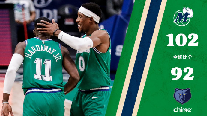 独行侠:哈达威29分4篮板,东契奇21分7篮板5助攻2抢断,理查德森17分7篮板3助攻2抢断,布伦森19分7篮板3助攻
