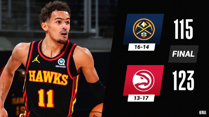 优直播2月22日讯 老鹰今日坐镇主场应战掘金,伤兵满营的老鹰近来状态不佳,近6场比赛输了5场,掘金这边穆雷则状态爆表,上一场爆砍50分率队取胜。首节约基奇十分低迷,仅仅依靠罚球得到1分,好在掘金角色球员给力,波特和波尔联手轰下15分帮助球队确立了6分的领先优势。次节加里纳利率领一众替补们打出一波13-0一举将比分反超,掘金则依靠巴顿和莫里斯勉力支撑,怎料许尔特和特雷-杨上场后又是一波15-3的攻击波,老鹰半场已然反超8分。第三节,特雷-杨开始自己的表演,连续两记超远三分点燃全场激情,单节爆砍14分,再加上卡佩拉肆虐篮下,掘金彻底被打懵,分差也被拉大到17分。末节,掘金在穆雷的带领下不断蚕食分差,无奈之前挖的坑太大,特雷-杨上场后重新掌握场上主动权,最终老鹰以123-115击败掘金。
