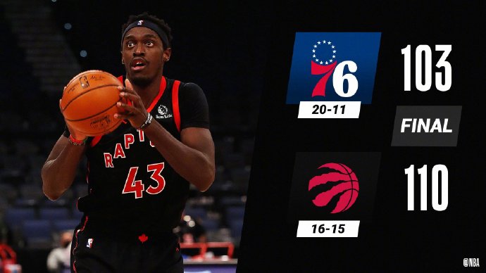 优直播2月22日讯 NBA常规赛猛龙主场迎战76人,76人近来取得2连胜仍旧占据东部榜首,猛龙也状态不错拿到3连胜。开场后76人率先打出攻势取得领先,随后西亚卡姆接连为猛龙追分,范弗里特连中4个三分帮助猛龙反超比分。第二节西蒙斯和哈里斯两人先后强攻篮下帮助76人夺回领先,上半场76人55-52领先猛龙。第三节两队仍旧打得互不相让,76人内线占据优势,猛龙则三分越投越顺,第四节布歇异军突起接连砍分帮助猛龙确立领先。76人则在进攻端陷入挣扎,最终猛龙110-103成功逆转76人取得4连胜。