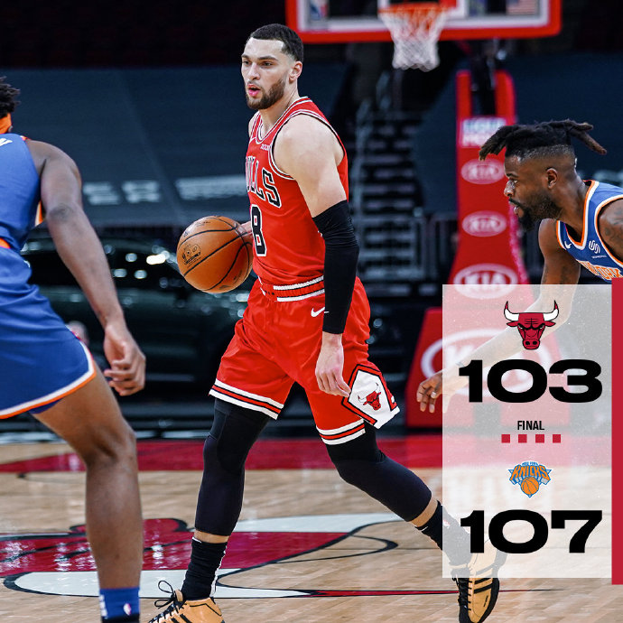 优直播2月4日讯 NBA常规赛继续进行,排名相近的尼克斯对战公牛,首节比赛尼克斯更早找到状态取得领先,在本节末段兰德尔连中三记三分帮助尼克斯扩大领先,以34-17领先公牛进入第二节。次节再战,对攻之中尼克斯保持两位数领先,公牛这边连续追分在半场前将分差缩小到11分,半场结束,尼克斯63-52领先公牛。易边再战,公牛进攻哑火,尼克斯趁机再一次扩大领先,而来到本节后半段公牛再度缩小分差,眼看分差逐渐缩小,尼克斯外线连中两记三分稳住局势,三节结束,尼克斯91-76领先公牛。最终决战尼克斯保持两位数领先,本节中段公牛多点开花将分差缩小到3分,尼克斯稳住阵脚,时间来到最后两分半钟,尼克斯领先五分,兰德尔顶着防守中投打进,拉文突入内线扣篮还上,随后公牛外线三分不中,无力逆转局势,最终全场比赛结束,尼克斯力克公牛结束两连败。