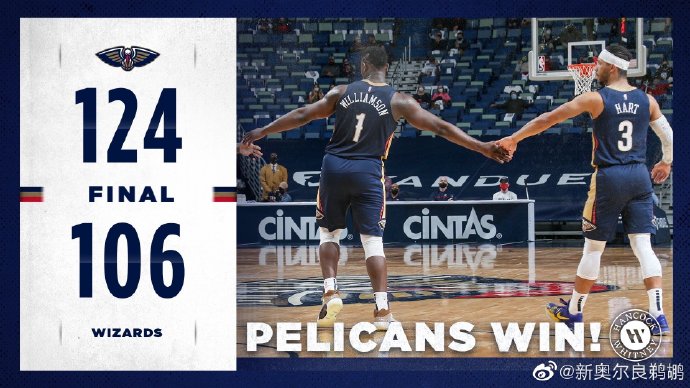 优直播1月28日讯 NBA常规赛奇才客场挑战鹈鹕,两队最近状态都表现不好,鹈鹕遭遇3连败,奇才2连败后已经在东部垫底,本场比赛威少缺阵。开场后鹈鹕抢得先机,随后奇才进攻断电,锡安内线连续拿分帮助鹈鹕在第一节建立17分领先。第二节回来小洛佩兹上来内线不断拿分,锡安也在内线强势回应,接着鹈鹕外线连中三分将分差拉大到20分,此后比尔再次站出来为奇才追分,上半场鹈鹕64-45领先。下半场回来两队大打对攻战,比尔第三节单节砍下24分帮助奇才略微缩小分差,但鹈鹕发挥稳定没有让奇才追上比分,最终鹈鹕124-106击败奇才结束3连败。