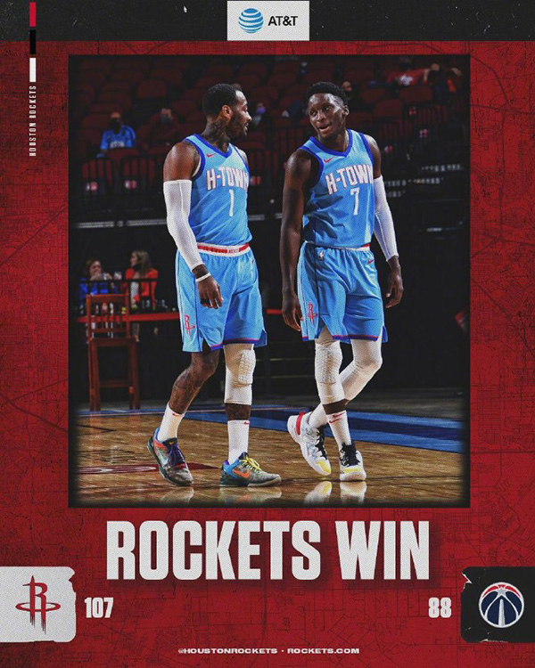 优直播1月27日讯 NBA常规赛火箭主场对阵奇才,火箭近来状态稳定取得2连胜。开场后比尔和威少帮助奇才取得领先,沃尔凭借个人能力为火箭紧追不舍,第二节上来戈登为火箭吹起反击的号角,火箭一鼓作气完成反超,不过奇才也是多次尝试缩小分差,上半场过后,火箭56-52领先奇才。下半场回来两队手感不佳频频打铁,比尔带领奇才一度完成反超,但是戈登及时站出来帮助火箭重新获得优势,第四节后半段火箭打出一波高潮锁定胜局,最终火箭107-88击败奇才取得3连胜。