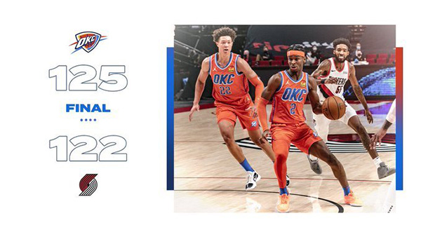 优直播1月26日讯 NBA常规赛,开拓者今日迎战雷霆,前者上场比赛战胜老鹰暂列西部第四位,而后者则是已经遭遇三连败排名西部第十二位,本场麦科勒姆、考文顿和霍福德等多人缺战。比赛上来雷霆就率先进入状态取得领先,分差也是逐渐达到两位数,整个上半场开拓者都处在追分状态。易边再战,开拓者终于追上比分,末节一度实现反超,但此后雷霆迅速调整,一波攻势再次将分差拉大到两位数,开拓者没有再获得反超机会,最终雷霆险胜开拓者,结束三连败。
