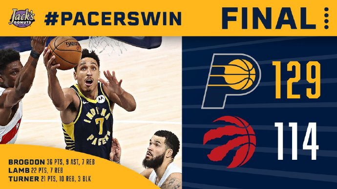 优直播1月26日讯 步行者今日坐镇主场迎战猛龙,猛龙近期6场比赛拿下5场状态迅速回暖,步行者则在近期的4场比赛输掉3场有所滑落。首节比赛步行者凭借一波7-0的攻势占据上风后便一路保持着微弱领先,随后对决猛龙一路追分但打的很被动,布罗格登在第二节末段独砍10分带队拉开比分并手握10分领先。下半场双方一直对攻谁都没能占得便宜,猛龙仅在第四节初短暂反超过比分,但随后步行者众将合力很快扭转局势,节末9-2的攻势将分差拉大至10分奠定胜局。最终,步行者力克猛龙拿下比赛。