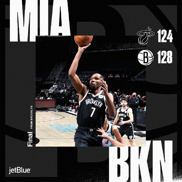 优直播1月24日讯 在克利夫兰连输两场之后,篮网今日回到主场迎战热火,上一场轮休的杜兰特本场回归。上半场哈里斯手感热得发烫成为X因素,在三巨头面前,哈里斯首节命中4记三分带领球队早早拉开比分,上半场一人命中6记三分攻下20分,仅比三巨头半场总得分少4分,篮网借势最多取得18分的领先,不过阿德巴约最后时刻站出来带领热火打出14-6的攻势将分差缩小至10分进入下半场。第三节的篮网仍然还占据着上风并一直保持着领先,但第四节节初的轮换哑火直接导致局面陷入被动,热火开局连中三分送出11-0的攻势很快追上比分并重燃悬念,不过欧文屡屡关键时刻救主,他末节独砍18分,最后时刻砍下关键7分为球队奠定胜局。最终,篮网主场扑灭热火结束2连败。