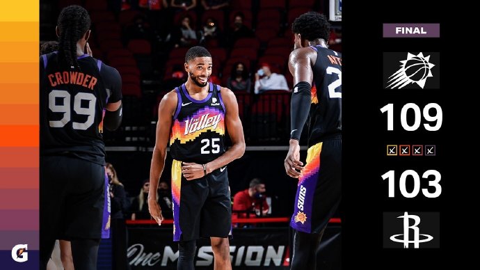 太阳(8-5):艾顿26分17篮板3助攻5封盖,布克24分5篮板2助攻,保罗13分4篮板4助攻,克劳德11分4篮板,佩恩10分5助攻,卡梅隆-约翰逊8分3篮板3助攻2抢断,布里奇斯8分5篮板5助攻,卡明斯基4分2篮板,内德尔5分2篮板。