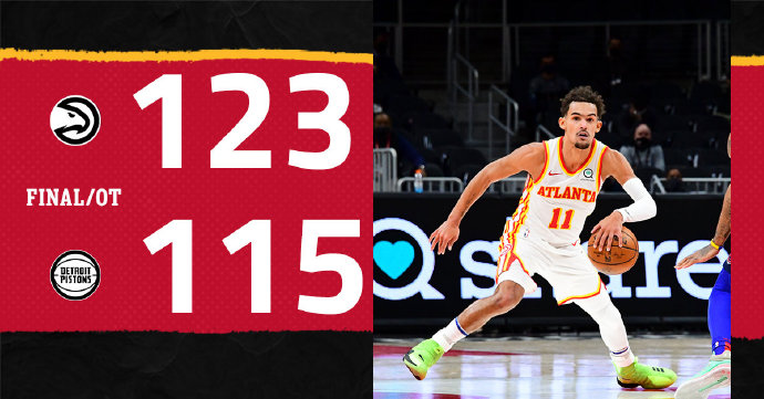 优直播1月21日讯 NBA常规赛活塞对阵老鹰,开场后两队主攻内线连续打平,此后虽然活塞外线找到手感,不过老鹰也紧咬比分,第二节卡佩拉篮下发挥强势帮助老鹰一度反超比分,不过活塞及时稳住局势仍旧以52-45领先结束上半场。下半场虽然特雷-杨火力全开为老鹰追分,并且他们一度将分差缩小到只差3分,但活塞三节结束前打出一波11-0的高潮将分差拉大到两位数,第四节两队进攻都手感不佳,特雷-杨在最后时刻连续制造犯规犯规追分并且助攻卡佩拉空接扳平比分,两队进入加时大战。加时赛中老鹰发挥更胜一筹,最终老鹰加时123-115逆转活塞。