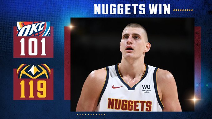 优直播1月20日讯 掘金今日坐镇主场迎来同为西北赛区对手雷霆的挑战,首节两队状态出色一路对攻,雷霆在拉锯战中一度取得7分领先,然而首节末的2分钟和第二节初的2分钟里,雷霆一路哑火导致局面陷入被动,掘金打出跨节15-0的攻势扭转局势,而在随后雷霆疯狂追赶中,掘金第二节末连中三记三分送出16-6的攻势一举拉开13分领先结束上半场。下半场的雷霆兵败如山倒,掘金在第三节末内外开花很快就将分差拉大至20分以上早早奠定胜局,末节之争雷霆仍然没有回暖迹象,掘金稳守大比分领先直到结束。最终,掘金主场轻取雷霆拿下比赛。