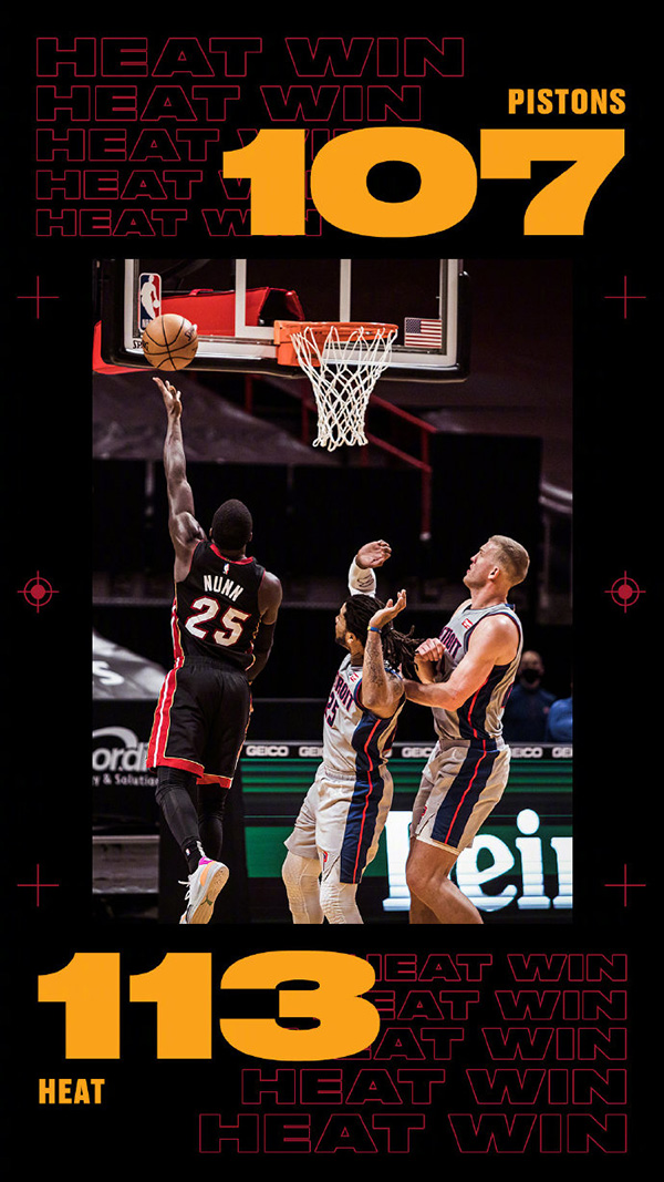 优直播1月19日讯 热火主场迎战活塞的比赛推迟至9:00进行,首节活塞一波流一举将比分拉开到20分,第二节热火稍稍将追回比分以落后6分进入下半场,第三节热火打出一波流将比分反超,末节两队进入拉锯状态,但热火笑到最后力克对手,自己也制住了 三连败。