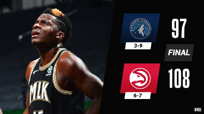 优直播1月19日讯 NBA常规赛老鹰主场对阵森林狼,老鹰最近遭遇2连败,森林狼则是在西部垫底。开场后两队进入状态都比较慢,老鹰率先打出攻势取得领先,不过森林狼咬住比分。第二节在特雷-杨带领下老鹰一度将分差拉大到两位数,不过森林狼外线连中三分又缩小分差,上半场老鹰58-51领先。下半场刚上来森林狼就打出攻势追平比分,不过老鹰依靠科林斯和亨特的发挥建立起两位数优势,森林狼森林狼进攻不力,但老鹰也失误频频,特雷-杨受到犯规困扰只得多次下场休息,最后一节老鹰守住领先,森林狼未能翻盘,最终老鹰108-97击败森林狼结束2连败。
