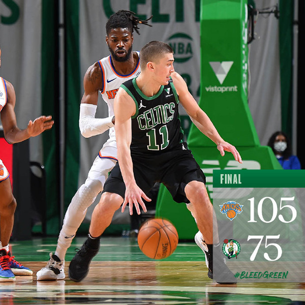 优直播1月18日讯 NBA常规赛,凯尔特人坐镇主场迎战尼克斯。此役,绿军主将肯巴-沃克迎来赛季首秀,塔图姆等人缺阵。首节比赛,杰伦-布朗高效拿下11分,但绿军其他球员合计仅得6分,而尼克斯双星兰德尔和巴雷特合砍19分10板,带队以28-17领先。第二节,尼克斯新秀奎克利表现出色,他连连得分帮助尼克斯打出进攻高潮,一举将分差拉大到15分。下半场开局,尼克斯再度轰出攻击波,把领先优势扩大到20+!而刚刚复出的沃克一度因伤返回更衣室,好在没有大碍,本场未继续出战。末节比赛沦为垃圾时间,尼克斯最终在客场以105-75大胜凯尔特人,结束五连败,并终结对手的五连胜。