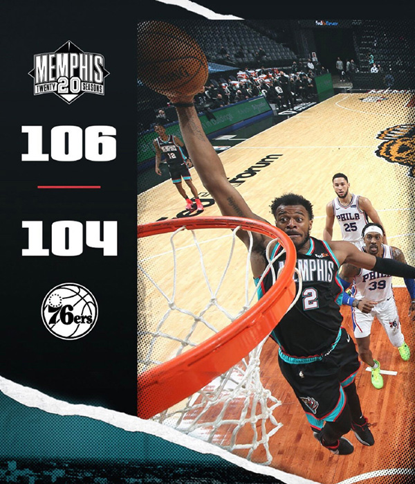 优直播1月17日讯 灰熊今日坐镇主场迎来76人的挑战,缺席了半个月的莫兰特本场迎来复出,76人这边恩比德则因右膝盖疼痛缺阵。首节比赛灰熊在开局慢热的情况下及时找到感觉并迅速追上比分并在第二节出迅速反超比分,76人前半节依靠西蒙斯9分3篮板2助攻的表现尚能咬住比分,但后半节集体哑火,灰熊在莫兰特的带领下送出10-3的进攻取得6分领先结束上半场。第三节灰熊很快便将优势扩大至两位数,76人仅仅抵抗了半节时间又一次末段哑火,灰熊节末再送10-2的攻势取得12分领先。然而末节米尔顿的突然爆发改变走势,他这一节独砍15分帮助76人不断蚕食分差并看到翻盘希望,而莫兰特最后一刻失误给了76人绝杀机会,不过哈里斯随后同样失误葬送良机。最终,灰熊险胜76人迎来4连胜。