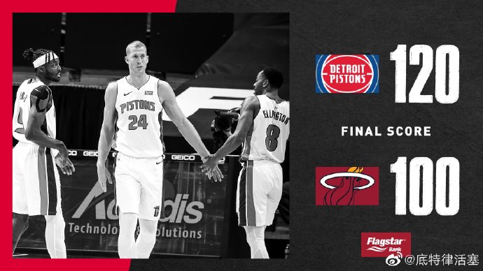 优直播1月17日讯 热火坐镇主场迎战活塞,此役巴特勒、希罗因健康协议缺阵。两队上半场打得十分胶着,热火凭借纳恩和阿德巴约在次节末连续得分,以56-52稍稍领先结束半场。易边再战,热火在第三节命中率下滑,活塞则找到外线手感,格兰特、格里芬和罗斯等连中三分,活塞凭借凶猛的外线火力单节净胜19分,取得两位数领先。末节热火仍未找回进攻节奏,而活塞延续着手感,罗斯、约什-杰克逊和贝等一众替补再轰进三分,帮助活塞把领先扩大到20分以上,就此锁定胜局。最终,活塞在客场以120-100大胜热火,止住2连败的颓势,同时送给热火3连败。