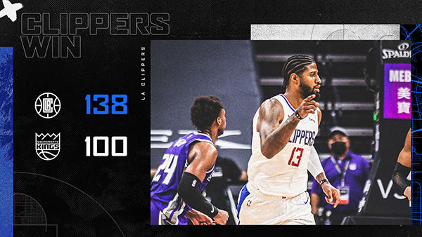 优直播1月16日讯 NBA常规赛快船客场对阵国王,快船近来取得2连胜,开场后国王率先打出高潮,但快船马上回敬高潮完成反超,此后两队陷入僵持,第二节两队仍旧大打对攻战,乔治和小莫里斯外线手感火热逐渐帮助球队取得领先,上半场快船69-61领先8分。下半场回来快船仍旧攻势凶猛,国王则进攻断电,快船一举建立起20分领先,莱昂纳德状态出色频频砍分,此后虽然国王稍稍找回些手感,但无力弥补巨大的分差,最终快船138-100大胜国王取得3连胜。