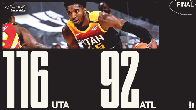 优直播1月16日讯 爵士坐镇主场迎战老鹰,此役爵士外线手感火热,康利、米切尔和博格达诺维奇连中三分,早早就帮助爵士建立起两位数领先。之后卡佩拉和科林斯轮番冲击内线为老鹰追分,但是米切尔在次节再度开火连续命中三分,率领爵士抵挡住老鹰的追分势头,以61-46保持两位数领先结束上半场。易边再战,爵士延续着手感,米切尔、博格丹诺维奇和克拉克森再轮番轰进三分,多点开花的爵士进一步扩大领先,比赛悬念提前失去。最终,爵士兵不血刃地以116-92击退老鹰,取得4连胜。