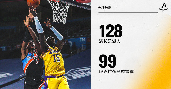 优直播1月14日讯 湖人前往客场挑战雷霆,两队都是背靠背作战。上半场浓眉在内线频频得手,詹姆斯连中三分,两人率领湖人早早就建立起两位数领先。易边再战,湖人延续着手感,浓眉和詹姆斯继续予取予求,哈雷尔等角色球员亦连续砍分,多点开花的湖人把领先扩大到20分以上,攻防两端全面处在下风的雷霆毫无抵抗之力。最终,6人得分上双的湖人兵不血刃地以128-99大胜雷霆,取得4连胜。
