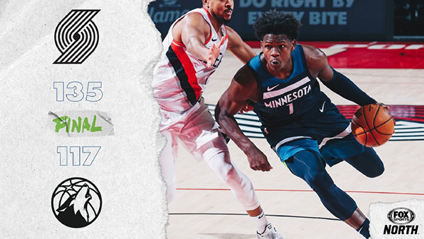 优直播1月8日讯 NBA常规赛,开拓者今日迎战森林狼,前者两连败后下滑至西部第八位,而后者更是惨遭五连败西部垫底。比赛上来拉塞尔连续得分帮着森林狼取得领先,但调整过后的开拓者逐渐追上比分,次节更是利用一波攻势拉开分差,半场结束时开拓者领先19分。易边再战,森林狼没有找到限制对手的办法,场上分差已经突破了三十分,末节森林狼虽然将分差缩小到十几分,但终究没能获得逆转比赛的机会,最终开拓者大胜森林狼,送给后者六连败。