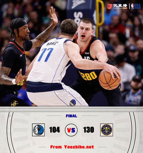优直播12月19日讯 NBA常规赛,掘金主场迎战独行侠。掘金西部第四,独行侠西部第三。上半场,开场双方短暂相持,掘金内外开花占据场上主动,东契奇高效输出,戈登和穆雷联手拿分帮助球队保持优势,次节双方大打对攻,东契奇继续全面表现,但掘金连中三分将分差拉开到两位数,半场打完掘金68-59领先9分。易边再战,独行侠命中率骤降,掘金一波10-0取得20分优势,末节掘金持续发力打出13-4的攻击波,独行侠换下东契奇投子认负。最终,掘金130-104大胜独行侠,主场过关。