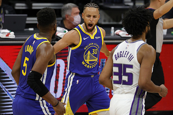 易边再战,手感火热的希尔德开局不久便是一记漂亮3+1,勇士则由库里的2+1做出回应,开局场面仍是国王稍占上风,希尔德势不可挡再一次命中三分。拉锯战中勇士发动第二波攻势,威金斯强突打成2+1,乌布雷则上演补扣,勇士用一波7-2的小高潮将劣势追至10分附近。国王的攻势回落明显没有前半节的发挥,而勇士在威金斯和克里斯一内一外的连续得分中将分差缩小至个位数。别利察三分为国王稍稍止血,但随后不久库里回敬一记三分,三节结束时,勇士将分差追至7分。