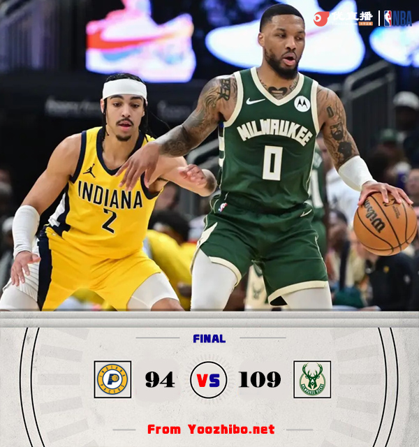 优直播4月22日讯 NBA季后赛东部首轮,雄鹿主场迎战步行者,雄鹿常规赛排在东部第3位,步行者则是排在东部第6位,本场比赛字母哥因伤缺阵。比赛开始,利拉德状态爆棚,里突外投上来就“戴表”,单节轰下19分,而步行者除了西亚卡姆苦苦支撑外,其余人提供不了火力支持,首节雄鹿领先9分,次节雄鹿火力不减,其余角色球员也开始有发挥,利拉德继续火热状态,单节再轰16分,雄鹿单节净胜18分在半场领先到27分。下半场,利拉德被疯狂包夹,西亚卡姆带领球队追至20分以内分差,雄鹿进攻端停滞,步行者替补一波9-0继续追近至12分,末节米德尔顿站出来里突外投连续取分,雄鹿依靠三分重新拉开20分以上领先,随后双方重新拉锯战,步行者无力回天,最终雄鹿109-94击退步行者,1-0领先。