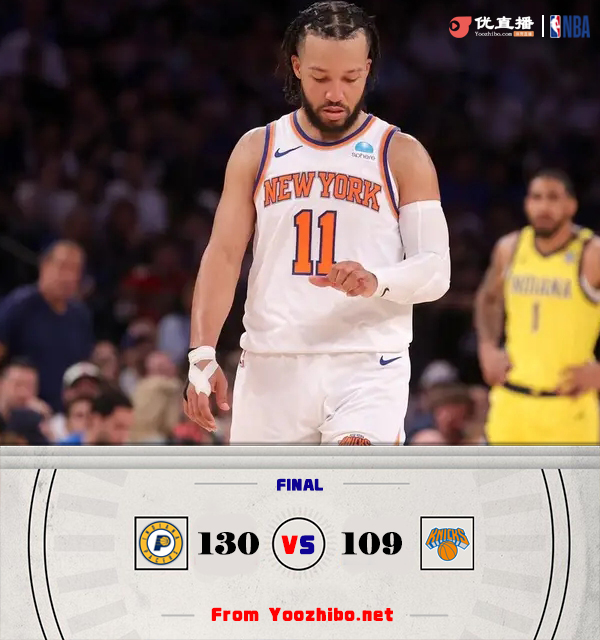 优直播5月20日讯 NBA季后赛东部半决赛G7,尼克斯回到主场迎来和步行者的生死战。本场阿努诺比和哈特均首发出战。比赛开始,双方开场势均力敌,比分交替领先,步行者外线开火连中三分打出16-4将分差拉开到两位数,次节更是持续输出,哈利伯顿和西亚卡姆联手带队一举获得20分以上优势,伯克斯挺身而出连投带罚单节拿到14分续命,半场战罢步行者70-55领先15分。易边再战,尼克斯奋力反击打出7-0将分差缩小到个位数,但此后却再度哑火,步行者多点开花轰出16-4攻击波稳住局势,阿努诺比确定退出比赛后布伦森遭遇左手骨折同样退赛,步行者轻松将分差拉开到20分,尼克斯连投带罚苦苦追赶,哈特犯满离场,步行者稳扎稳打将优势保持到最后。最终,步行者130-109击败尼克斯,总比分4-3挺进东决。