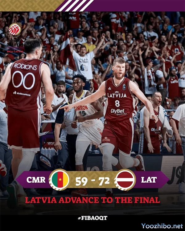 优直播讯 07月07日讯 巴黎奥运会男篮落选赛拉脱维亚赛区半决赛,拉脱维亚72-59战胜喀麦隆。