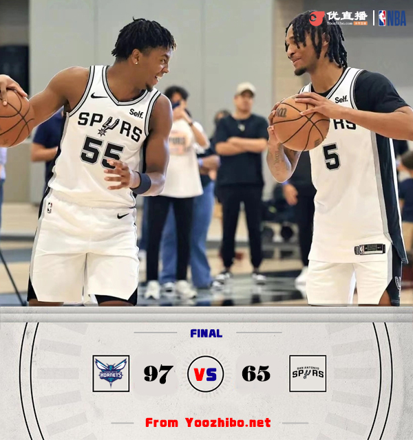 优直播讯 7月7日讯 NBA夏季联赛加州经典赛今日开打,马刺和黄蜂迎来一场对决。马刺方面今年4号新秀卡斯尔首发出战。首节之争马刺虽然坐拥卡斯尔这样的高位新秀但球队整体表现比较糟糕,整个第一节他们仅得9分早早落入下风;反观黄蜂这边人人争先上来就是一波12-4的开局并奠定首节14分优势;次节马刺虽然找回状态但难耐稳定输出的黄蜂,盖耶半场砍下15分帮助黄蜂带着14分领先进入下半场。休息归来马刺开局打出11-6的攻势短暂追至个位数,但回头就被黄蜂连续抓反击重新拉开比分;这之后黄蜂一路占据主动,末节开局一波15-4的攻势直接将分差拉大至27分早早奠定胜局。最终,黄蜂97-65轻取马刺迎来加州夏联的开门红。