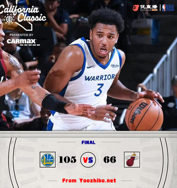 优直播讯 7月7日讯 NBA夏季联赛加州经典赛,勇士对阵热火,勇士选秀大会主要选中52号秀波斯特,而热火则是选中15号秀韦尔和44号秀拉松。比赛开始,勇士上来就率先进入状态打出8-2不错开局,随后热火强势回应8-0反超分,伊森-汤普森手感不错帮助勇士首节领先7分,次节双方展开拉锯战,勇士外线保持火力,斯威德接连3记三分帮助热火咬住比分,但伊森-汤普森继续火热状态半场拿到15分,比克曼追身压哨三分再进助勇士半场领先16分。下半场,普劳登上来连续3记三分,个人打出11-0直接领先27分,又是斯威德站出来止血,双方围绕着30分左右的分差展开拉锯战,末节普劳登继续三分,但随后受伤离场,但热火抓不住机会,勇士直接拉开40分以上领先,最终勇士105-66大胜热火。