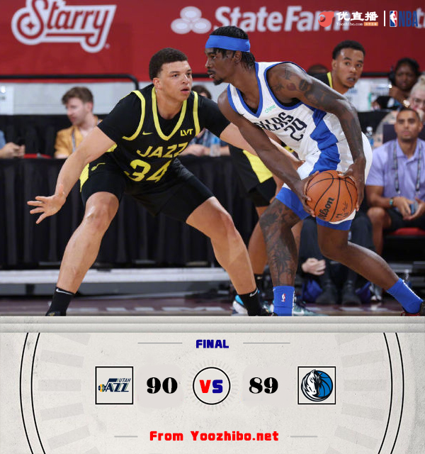 优直播 7月14日讯 NBA夏季联赛继续进行,独行侠对阵爵士,爵士这边洛夫顿和贝兹利领衔,去年的9号秀亨德里克斯和今年的10号秀科迪-威廉姆斯、布朗尼的南加大队友科利尔在列,独行侠这边,普罗斯珀和AJ-劳森领衔出战。此役一上来爵士率先找到节奏,菲利波夫斯基和科利尔内外开花,率队打出9-2开局,末段布兰登-威廉姆斯率队回敬8-2小高潮,首节结束时爵士领先1分,次节回来,戈特曼飚中反超三分,两队拉开架势展开对攻,半场战罢,独行侠反超1分。短暂调整后双方继续僵持,但中段爵士进攻哑火,独行侠一波9-2拉开比分,三节结束后独行侠领先6分,末节上来,独行侠进攻突然断电,爵士顺势轰出14-0进攻高潮,独行侠内线连续取分稳住阵脚,决胜时刻洛夫顿抢板推人犯规,但劳森两罚一中,随后洛夫顿突破上篮造犯规,独行侠挑战失败,洛夫顿两罚一中后独行侠绝杀未果,最终爵士90-89险胜独行侠。
