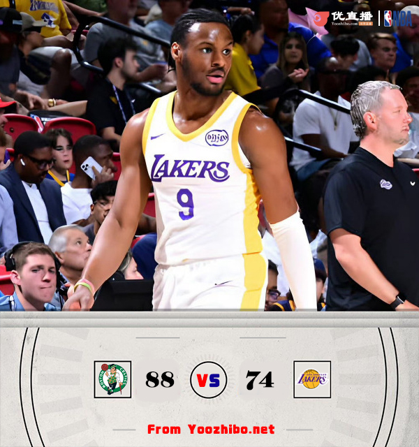优直播7月16日讯 NBA夏季联赛迎来湖凯大战,布朗尼和克内克特领衔出战,凯尔特人这边,去年的次轮秀沃尔什和中锋科塔在列。首节开打后凯尔特人率先发力,科塔连续空接炸筐率队轰出11-2开局,中段湖人逐渐找到节奏,克内克特连续取分率队回敬11-3攻击波,首节结束时凯尔特人领先2分,次节回来,布朗尼防守端1防4送出遮天大帽,但三分仍未开张,凯尔特人内外开花再次拉开比分,半场战罢,凯尔特人确立16分优势。易边再战后凯尔特人进攻火力放缓,但湖人手感冰凉未能抓住机会,双方分差始终维持在两位数,凯尔特人领先16分进入末节,末节上来,湖人进攻有所起色一度打停对手,布朗尼跳投斩获个人本场首分,但凯尔特人稳扎稳打总能给予回应,比赛提前失去悬念,最终凯尔特人88-74大胜送湖人夏联五连败。