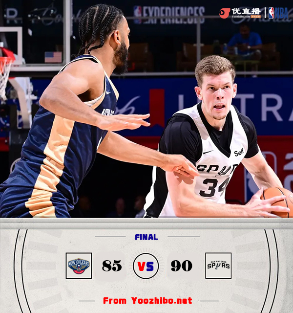 优直播7月17日讯 NBA夏季联赛继续进行,马刺迎战鹈鹕,去年的14号秀乔丹-霍金斯领衔鹈鹕阵容,马刺这边,两位去年的次轮秀哈里森-英格拉姆和西迪-西索科领衔出战。此役一上来,两队便你来我往比分紧咬,英格拉姆手感发烫连中三分,鹈鹕则在内线连续取分,首节结束时两队战成21平,次节回来,米尼克斯连投带罚单节贡献8分,帮助马刺一度确立优势,马特科维奇连续暴扣强势回应,半场战罢,马刺领先4分。短暂调整后马刺内外开花再度拉开比分,鹈鹕内线取分止住颓势,三节结束后马刺继续领先7分,末节上来,场上形势风云突变,马特科维奇里突外投无人可挡,率领鹈鹕一波16-6抹平分差,决胜时刻布耶连拿5分,鹈鹕绝平三分不中,多诺万-威廉姆斯摘下关键篮板后两罚全中锁定胜局,最终马刺90-85力克鹈鹕送对手夏联3连败。