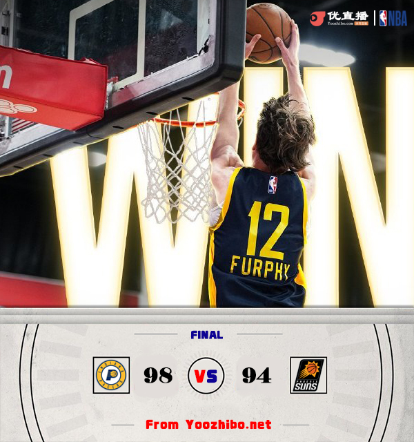 优直播 7月17日讯 NBA夏季联赛,步行者对阵太阳。比赛开始,步行者率先发力,内外开花占据主动,太阳不断冲击篮筐拿分打出9-2的攻势迅速反超,次节太阳连中三分扩大领先,步行者频频杀入内线咬住比分,罗迪中投将分差拉开到两位数,半场战罢太阳54-44领先10分。易边再战,太阳命中率骤降,步行者三分3连击迅速迫近比分,沃克三分命中率队反超,末节双方陷入缠斗,比分始终紧咬,关键时刻弗菲飙中三分帮助步行者确立5分优势,太阳苦苦追赶无果。最终,步行者98-94力克太阳。