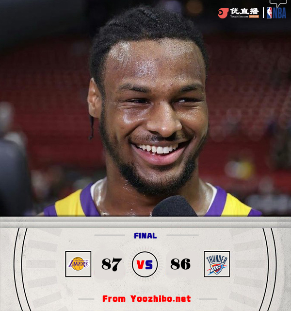 优直播 7月18日讯 NBA夏季联赛今日继续开打,老鹰和湖人迎来一场一场交手,湖人在拉斯维加斯的前两场比赛全部输球至今还未尝一胜;阵容上状元郎里萨谢和湖人17号秀克内克特均缺席本场比赛,布朗尼继续首发出战。首节湖人抢开局以一波12-2的攻势迅速占据上风,不过这波优势没能撑得过1分钟,老鹰随即连续飚进三分回敬11-2的攻势追上比分。次节湖人在拉锯战中再一次拉开比分,布朗尼命中个人夏联第一记三分、同时也结束自己三分16连铁帮助湖人稍稍拉开比分,但回头老鹰连续制造犯规罚球追到3分进入下半场。休息归来老鹰上来就是一波11-0直接扭转局势,布朗尼期间还吃到技术犯规;前半段湖人打的非常被动,好在末段辛森突然爆发连中三记三分为期止住崩盘局面;末节湖人彻底放开,辛森和库泽连续飚进三分,随着布朗尼三分再中湖人在末段一举实现反超,决胜时刻卡尔斯顿连续打进关键球帮助球队奠定胜局,老鹰则错失绝杀机会。最终,湖人逆转老鹰迎来夏联首胜。