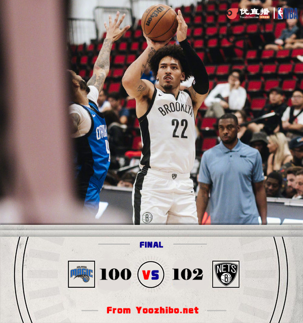 优直播7月19日讯 NBA夏季联赛,魔术对阵篮网。开场后魔术多点开花率先打出攻势取得领先,篮网通过内线打开局面咬住比分。第二节在篮网克洛尼和威尔逊的带领下掀起反扑将比分反超。下半场魔术重新找回节奏咬住比分,第四节两队经过短暂的僵持后篮网再度建立起微弱优势,两队常规时间打平进入加时。加时两队打得依旧胶着,威尔逊打进绝杀球,最终篮网加时102-100击败魔术。