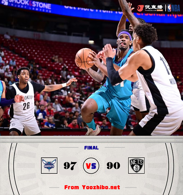 优直播 7月22日讯 NBA夏季联赛排位赛,黄蜂对阵篮网。比赛开始,黄蜂外线连续发炮打出8-2开局,但篮网马上回应7-0小高潮,双方命中率一般,克洛尼和泰瑞斯-马丁接连三分命中助篮网首节反超2分,次节打了2分多钟黄蜂才打破僵局,双方继续展开拉锯战,斯莱特接连三分半场怒轰21分帮助黄蜂重新取得2分领先。下半场,斯莱特继续火热手感,带领黄蜂一波15-2超级进攻波重新拉开双位数领先,但篮网外线多点开花接连5记三分再次咬住比分,三节黄蜂领先6分,末节篮网接连攻击内线一度又反超1分,但黄蜂接连外线一波11-0重新掌握双位数领先,最终黄蜂97-90力克篮网。
