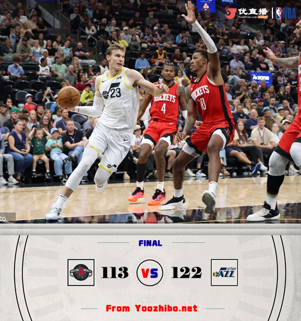 优直播10月8日讯 NBA季前赛继续开打,火箭队迎来季前赛第一个对手爵士队。首节开局火箭立足防守迅速接管比赛,他们7分钟里仅丢2分,让爵士期间12投仅命中1球,出色的防守帮助球队取得15-2的攻势占据先机。次节爵士进攻端明显回暖不断蚕食比分,奈何后半段杰伦-格林突然爆发连续命中4记三分,他这一节独砍14分并帮助球队取得13分优势进入下半场。休息归来火箭攻防两端状态骤降,爵士在后半段轰出29-8的攻势一举反超比分,这之后双方逐渐换上替补开启练兵,而爵士也顶住了对手的猛攻。最终,爵士在最多落后19分的情况下逆转火箭拿下比赛。