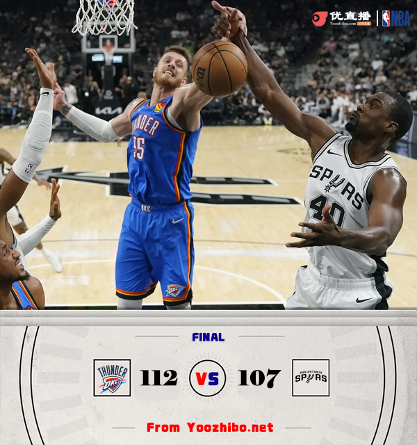 优直10月8日讯 NBA季前赛,雷霆对阵马刺,本场比赛亚历山大、保罗和文班亚马缺阵。开场后马刺全面开花抢得先机,随后霍姆格伦内线发威,不但防守端连续送出大帽,进攻端也是势不可挡,他首节独得10分帮雷霆反超比分。马穆克拉什维利和尚帕尼连续外线开火为马刺掀起反扑势头,半场结束前杰伦-威廉姆斯连续砍分帮助雷霆巩固优势。易边再战,尚帕尼延续三分手感,马刺也继续利用三分追分,第三节他们打出进攻高潮单节轰下40分。最后一节两队主要都是第三阵容出战,雷霆再次拉开比分,最终雷霆112-107战胜马刺。