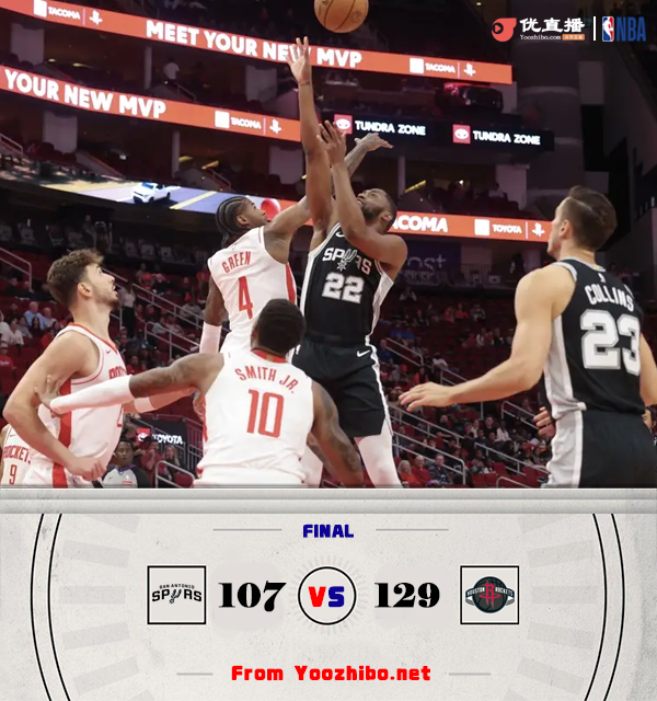 优直播10月18日讯 NBA季前赛,火箭主场迎战马刺,本场比赛文班亚马和保罗缺阵。比赛开始,双方都迅速进入状态并展开拉锯战,布兰纳姆状态不错,卡斯尔上来也很活跃;阿门接连送暴扣,火箭多点开花,首节双方打成31平,次节申京联手小史密斯接连攻击内线帮助火箭建立主动权,随后火箭接连外线发炮一波19-0超级攻击波拉开20分以上领先。下半场,巴恩斯里突外投连砍8分带领马刺缩小分差,但杰伦-格林外线手感火热,带领火箭接连三分回应重新拉开20分以上领先,末节申京接连内线强打2+1助队保持20分以上领先,随后双方深度轮换练兵,最终火箭129-107轻取马刺。
