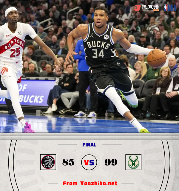 优直播11月13日讯 NBA杯东部B组小组赛,雄鹿主场迎战猛龙,此前对阵凯尔特人时被打到头部的利拉德,此役进入脑震荡保护协议缺阵。比赛开打后雄鹿内线率先开张,洛佩斯连投带罚不断取分,帮助雄鹿开局占优,迪克里突外投给予回应,但雄鹿外线多点开花,首节结束时雄鹿领先5分,次节回来,迪克火力不减连造杀伤单节贡献14分,但无奈猛龙其他球员状态低迷,雄鹿稳扎稳打牢牢占优,半场战罢,雄鹿将优势扩大到11分。易边再战后猛龙下起三分雨,一波11-0后抹平分差,雄鹿外线及时复苏稳住局势,末段雄鹿连续杀伤内线,三节结束后雄鹿依然领先14分,末节上来,雄鹿延续火力将分差拉开到20分,猛龙进攻乏力翻盘无望,最终雄鹿99-85力克对手。