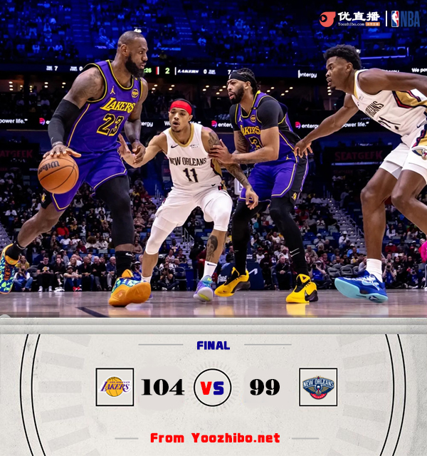 优直播讯北京时间11月17日讯 NBA常规赛今日继续开打,鹈鹕坐镇主场迎战4连胜的湖人,鹈鹕方面伤病依旧严重,以锡安、麦科勒姆为首的核心继续缺席比赛,湖人方面八村磊、范德比尔特等关键球员也因伤缺阵。首节之争鹈鹕在短暂拉锯后突出重围,他们在英格拉姆的带领下送出11-0的攻势一举拉开比分并奠定整个上半场的领先;湖人方面打得比较被动,尤其是替补端的贡献依旧不多,整个上半场湖人的替补端仅贡献4分,与之相反的是鹈鹕替补这边有19分入账成为球队半场取得10分领先的关键。休息归来湖人双核詹姆斯和浓眉哥站出来连续拿分,加之克内克特神勇三节拿到21分,湖人送出18-7的攻势一举反超比分。不过鹈鹕也在末节及时回暖和湖人周旋将悬念留到最后,决胜时刻詹姆斯站出来连续飚进两记三分为球队奠定胜局。最终,湖人力克鹈鹕迎来5连胜。