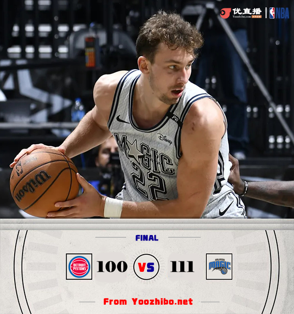 优直播讯北京时间11月24日讯 NBA常规赛,魔术主场迎战活塞。魔术10胜7负高居东部第三,活塞7胜10负排东部第八,康宁汉姆因伤缺阵。上半场,小瓦格纳率先发力,内外开花很快帮助球队取得两位数领先,次节魔术命中率下降,活塞内外开花不断迫近比分,萨格斯因伤退赛,半场战罢魔术56-53活塞。下半场,活塞先中三分扳平比分,此后双方陷入缠斗,小瓦格纳连得9分带队重获两位数优势,末节魔术占得先机打出9-2扩大领先,活塞苦苦追赶无果。最终,魔术111-100击败活塞,主场过关。